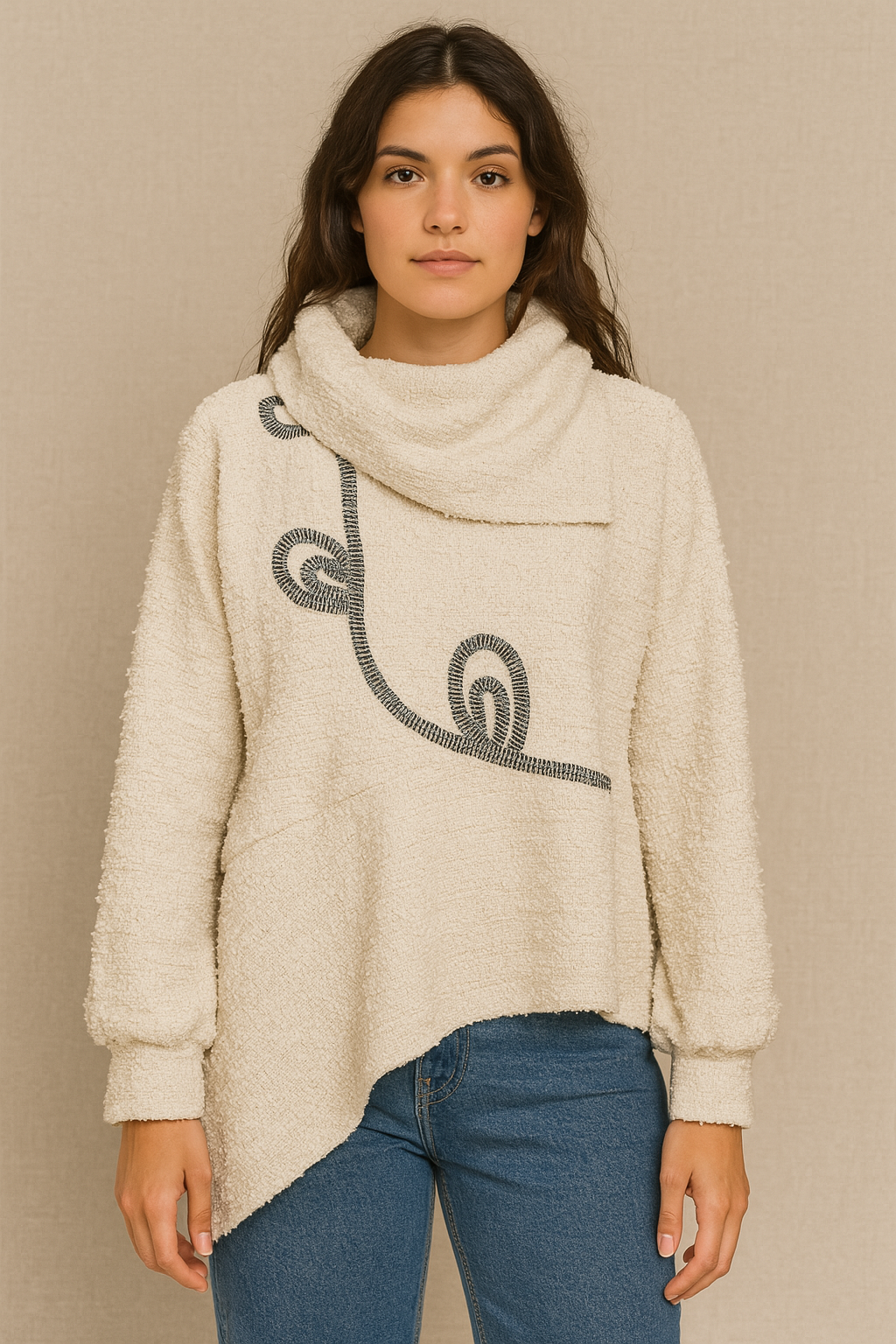 sw en tejido de punto tipo bucle, de forma irregular, y bordado con nuestro monograma. Un saco versátil para un look elegante o casual !