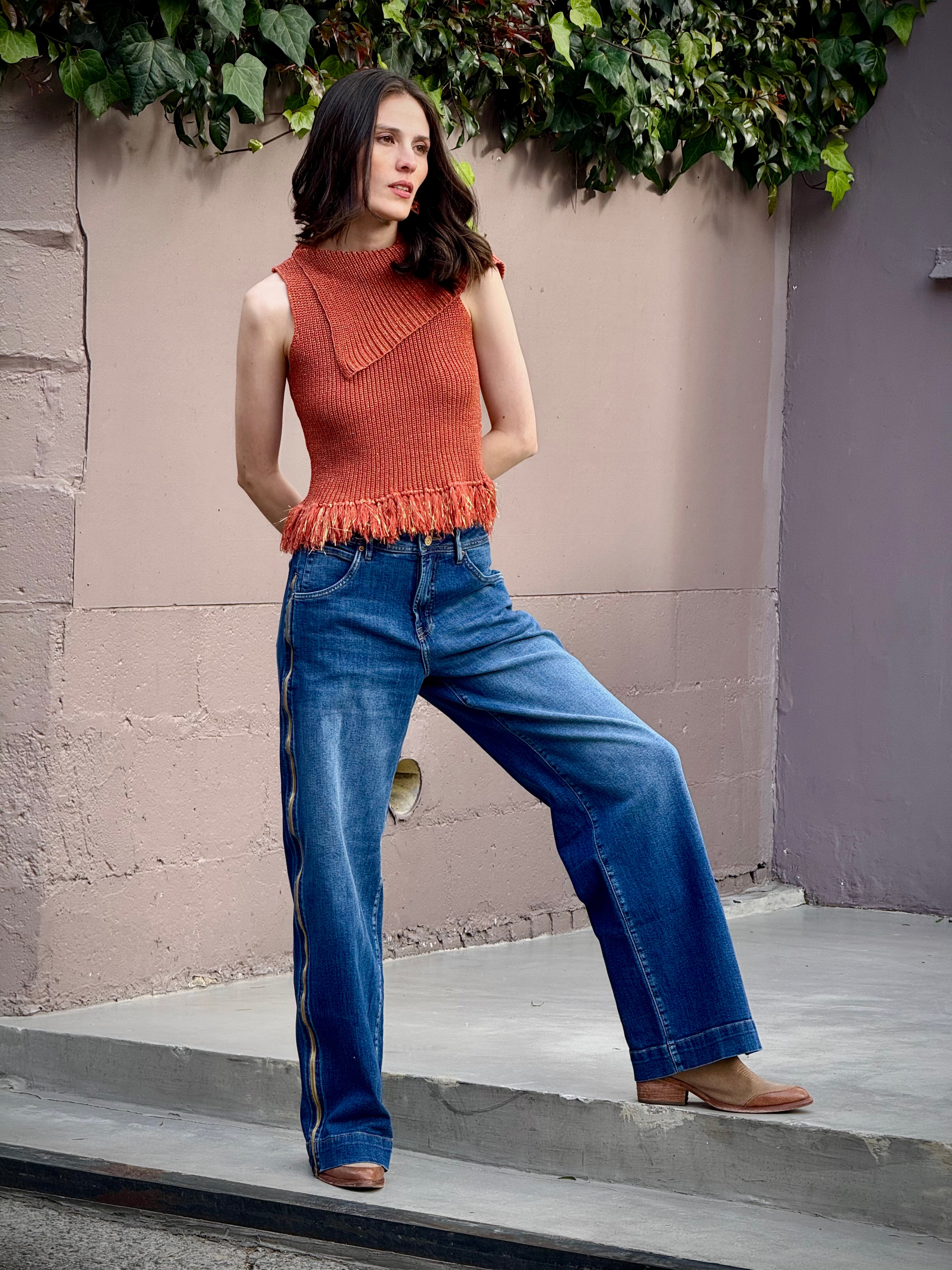 Jean con detalle de cremallera la costado. un modelo moderno y diferente con el que impactaras siempre. Jean de  Algodón 100 % con stretch bota recta y tiro medio horma perfecta! Modelo talla small como talla 6